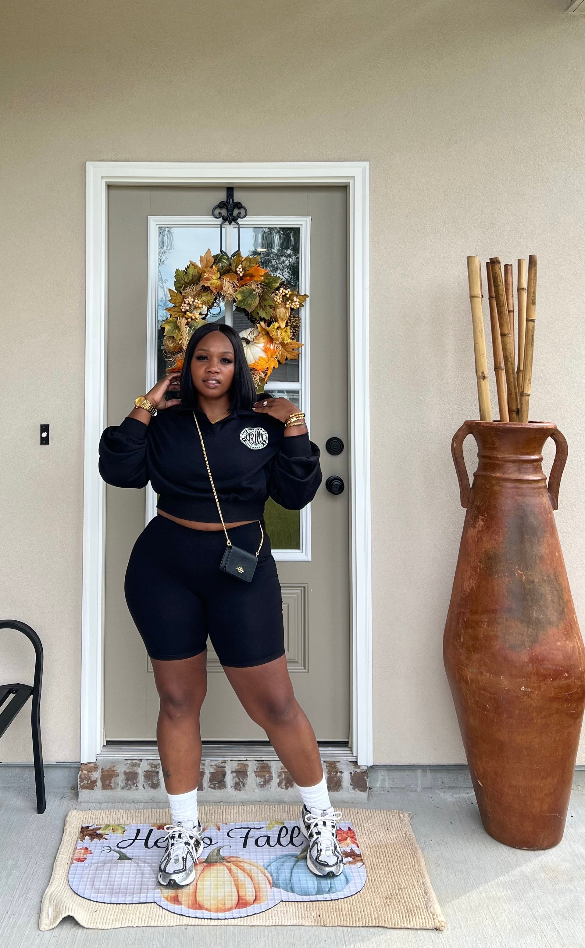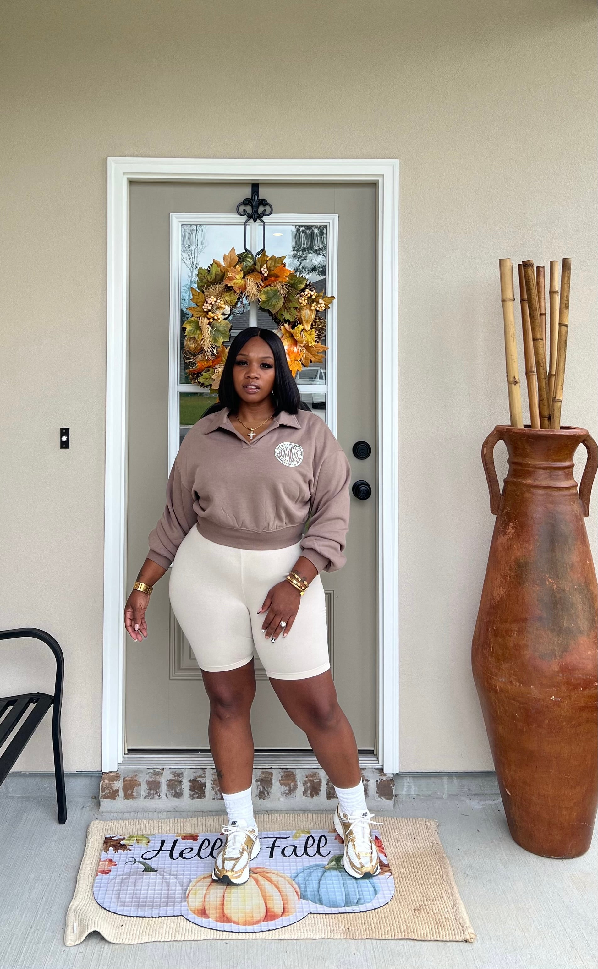 The West Coast Sweatshirt offers a chic and comfortable style with its vneck collar crop sweatshirt…..Made with stretchy fabric, this set provides a flattering fit while allowing for ease of movement. Perfect for casual outings or a trendy workout look.